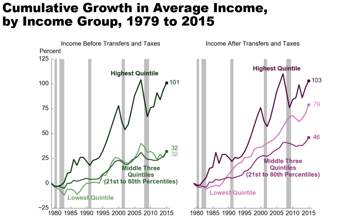 The middle class has seen slow income growth over the past 35 years, according to CBO’s newly released data. Belle Sawhill and Chris Pulliam have argued that recent tax policy exacerbates this trend and that the tax code should be reformed to help the middle class: